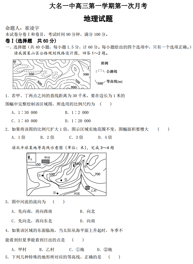 河北邯郸大名一中2017届高三上学期第一次月考地理试题及答案