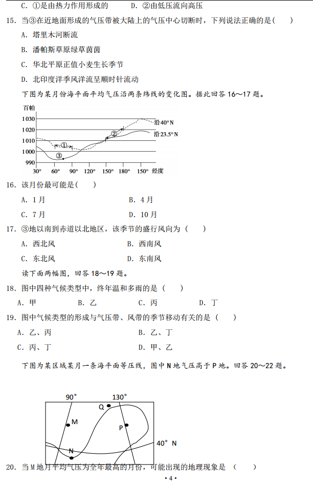 河北邯郸大名一中2017届高三上学期第一次月考地理试题及答案(4)