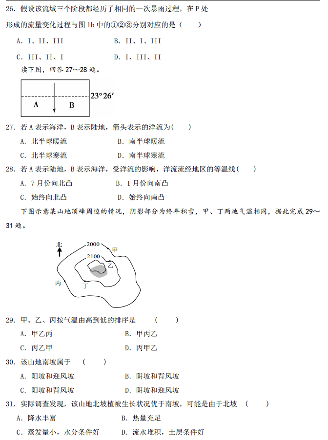 河北邯郸大名一中2017届高三上学期第一次月考地理试题及答案(6)