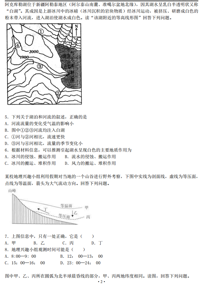 湖北省宜城市第一中学2017届高三8月月考文综地理试题及答案(2)