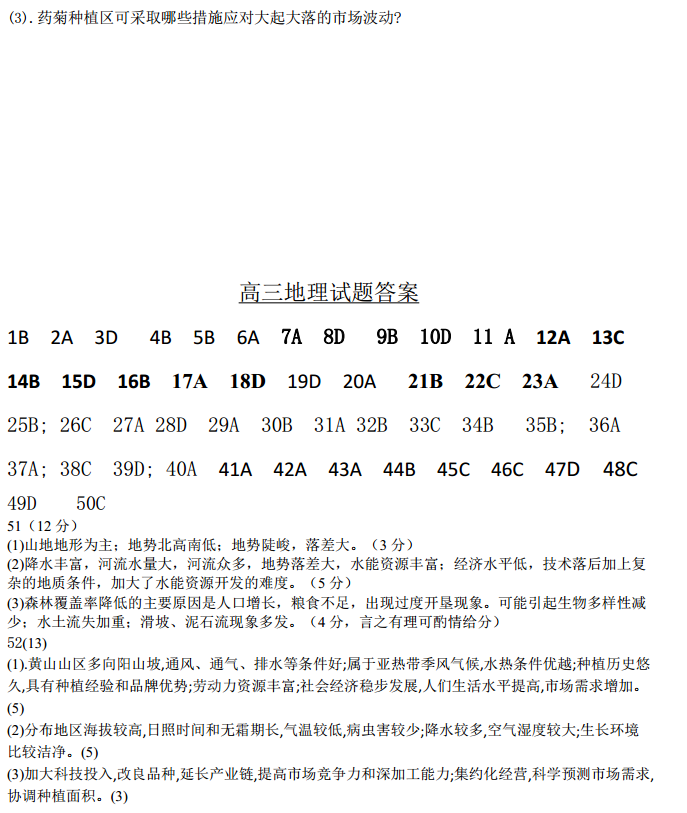 河北景县中学2017届高三上学期摸底考文综地理试题及答案(14)
