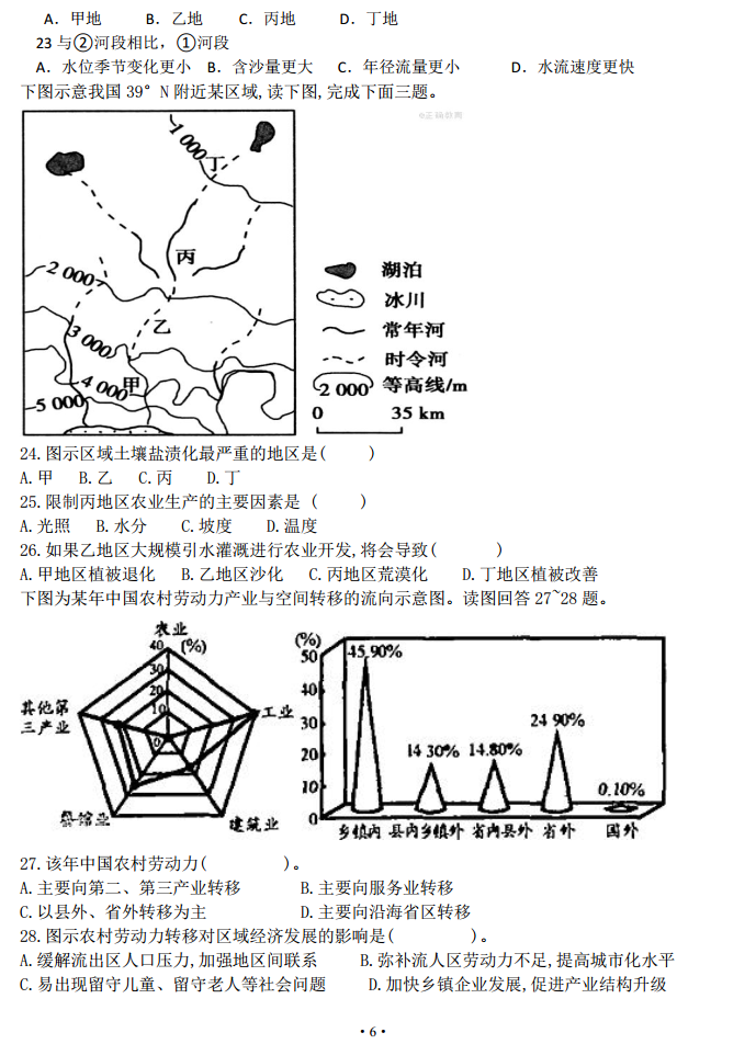 河北景县中学2017届高三上学期摸底考文综地理试题及答案(6)