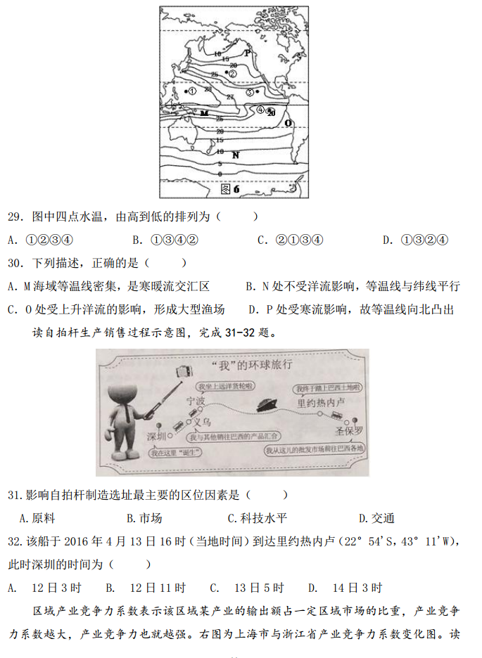 河北衡水中学2017届高三摸底联考文综地理试题及答案(11)