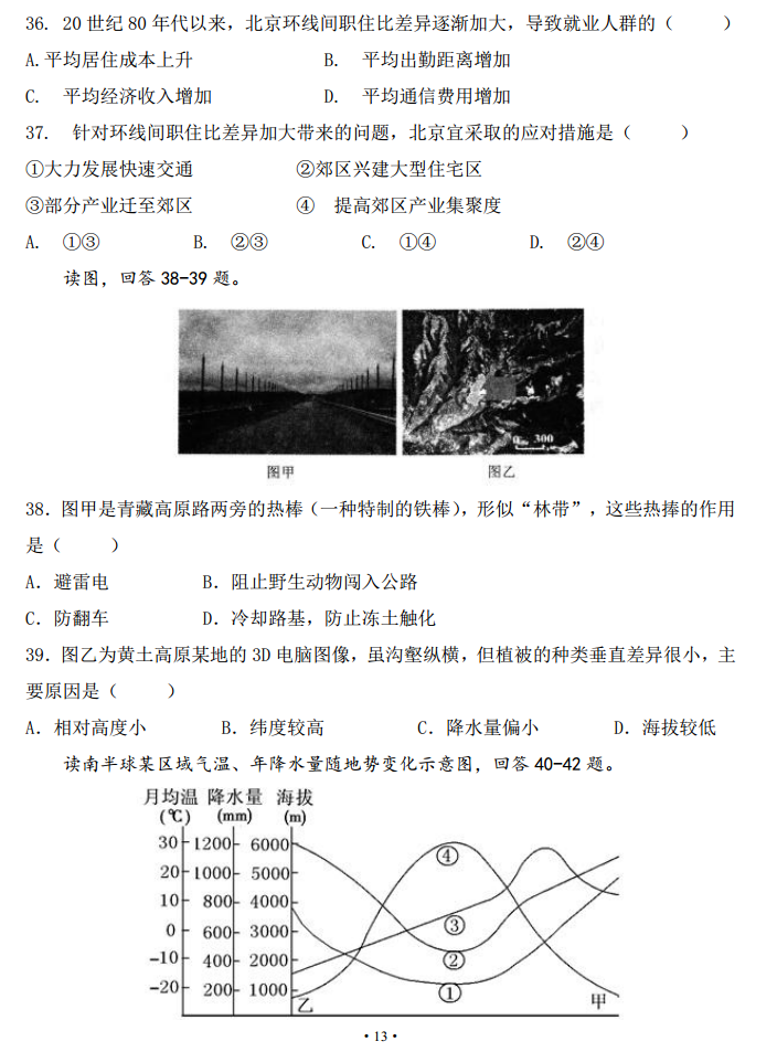 河北衡水中学2017届高三摸底联考文综地理试题及答案(13)
