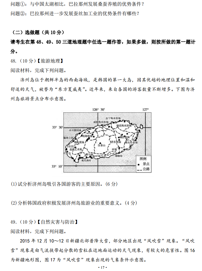 河北衡水中学2017届高三摸底联考文综地理试题及答案(17)