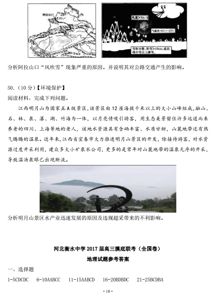 河北衡水中学2017届高三摸底联考文综地理试题及答案(18)