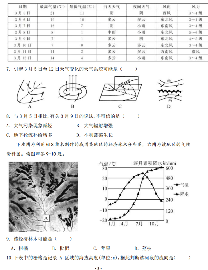 河北衡水中学2017届高三摸底联考文综地理试题及答案(3)