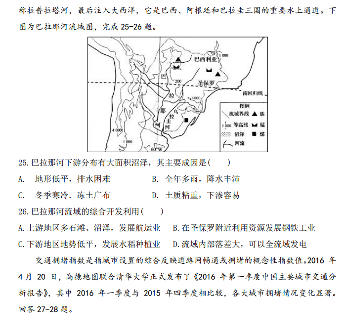 河北衡水中学2017届高三摸底联考文综地理试题及答案(9)