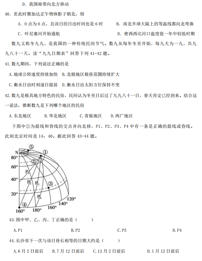 河北衡水中学2017届高三上学期小二调考试地理试题及答案(10)