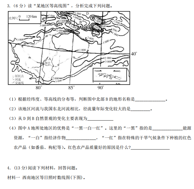河北衡水中学2017届高三上学期小二调考试地理试题及答案(17)