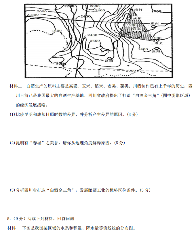 河北衡水中学2017届高三上学期小二调考试地理试题及答案(18)
