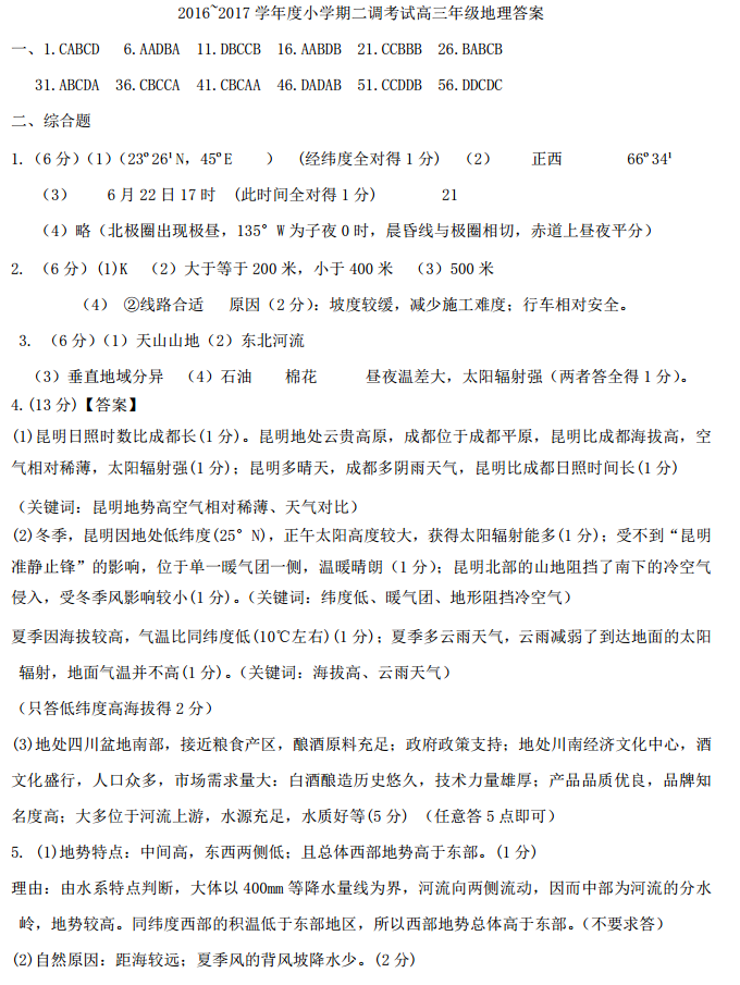 河北衡水中学2017届高三上学期小二调考试地理试题及答案(20)