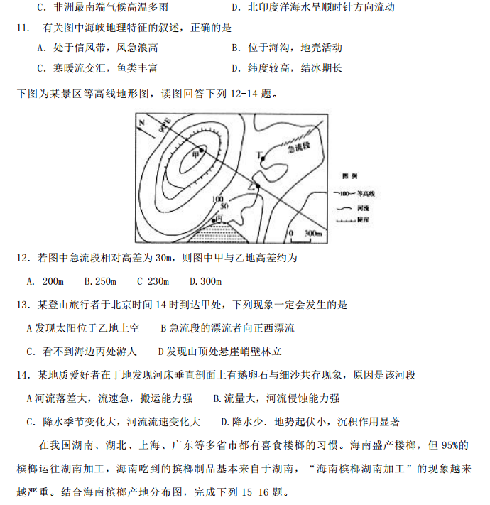 河北衡水中学2017届高三上学期小二调考试地理试题及答案(3)