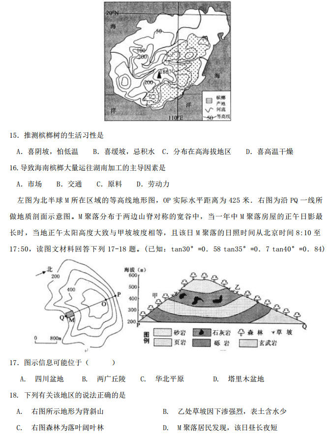 河北衡水中学2017届高三上学期小二调考试地理试题及答案(4)