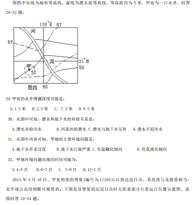 河北衡水中学2017届高三上学期小二调考试地理试题及答案(7)