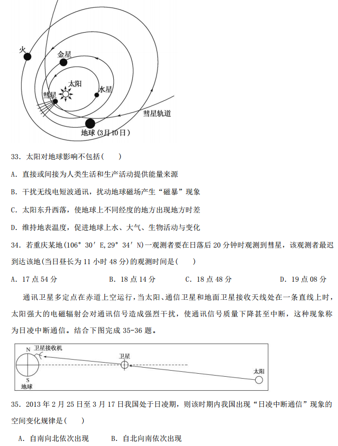 河北衡水中学2017届高三上学期小二调考试地理试题及答案(8)