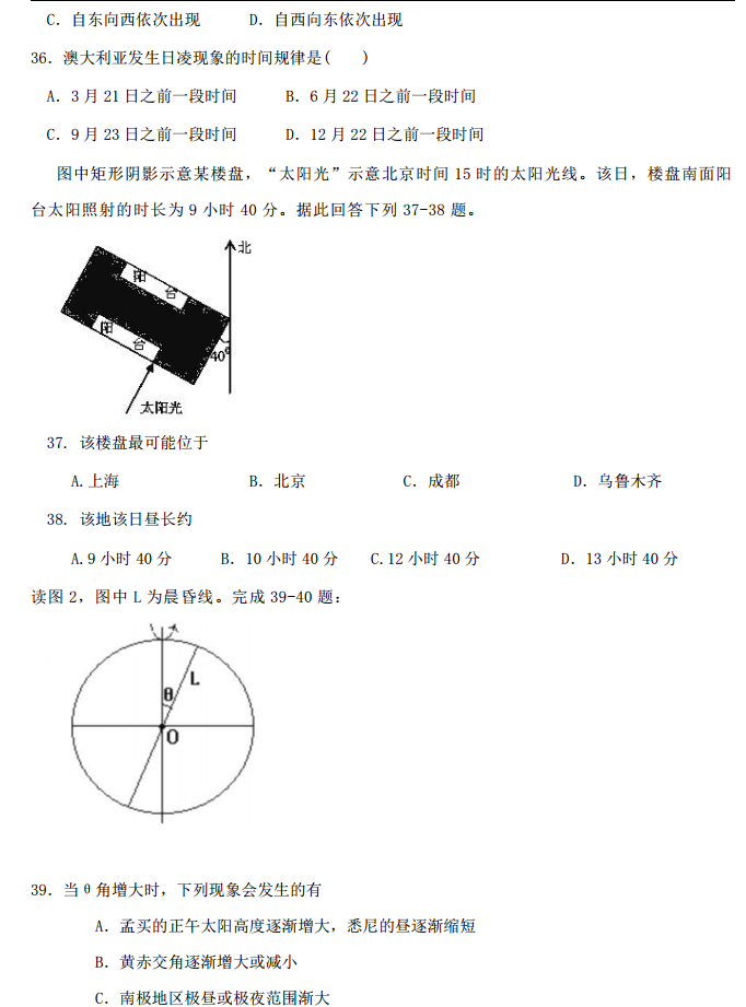 河北衡水中学2017届高三上学期小二调考试地理试题及答案(9)