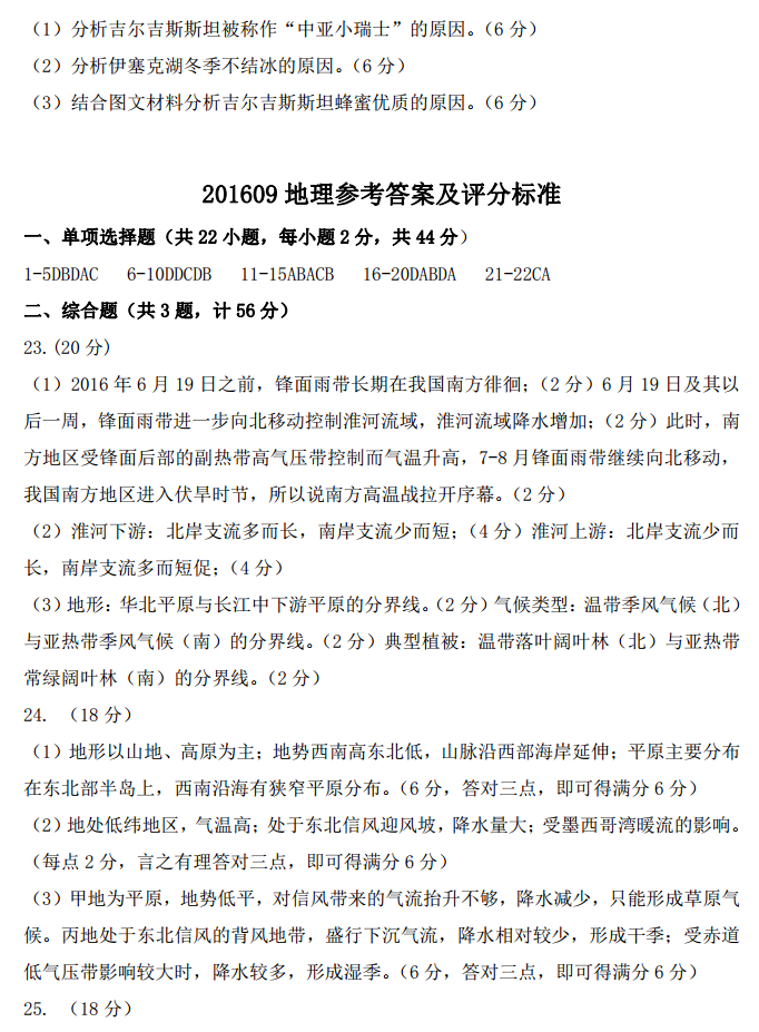 湖北黄冈市2017届高三第一次调研考试地理试题及答案(9)