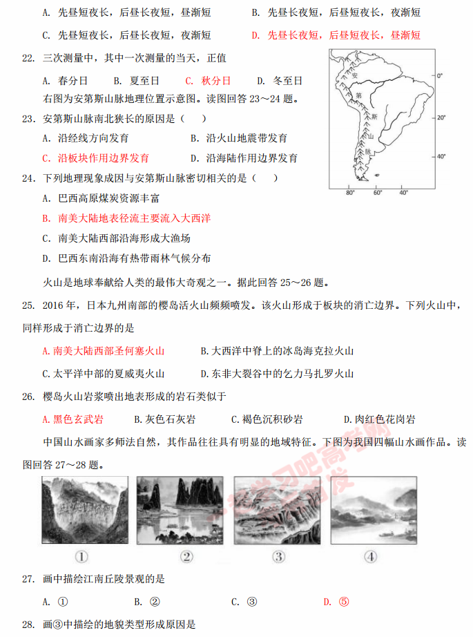 河北石家庄辛集中学2017届高三上第一次阶段考地理试题及答案(5)