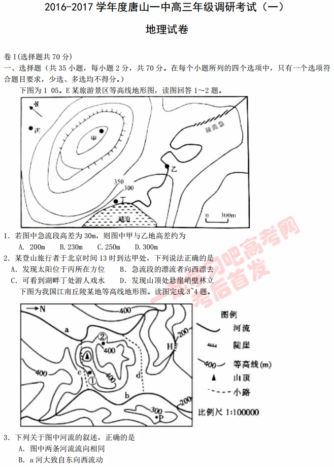 高考地理模拟题 http://www.ajrhws.com/dili/