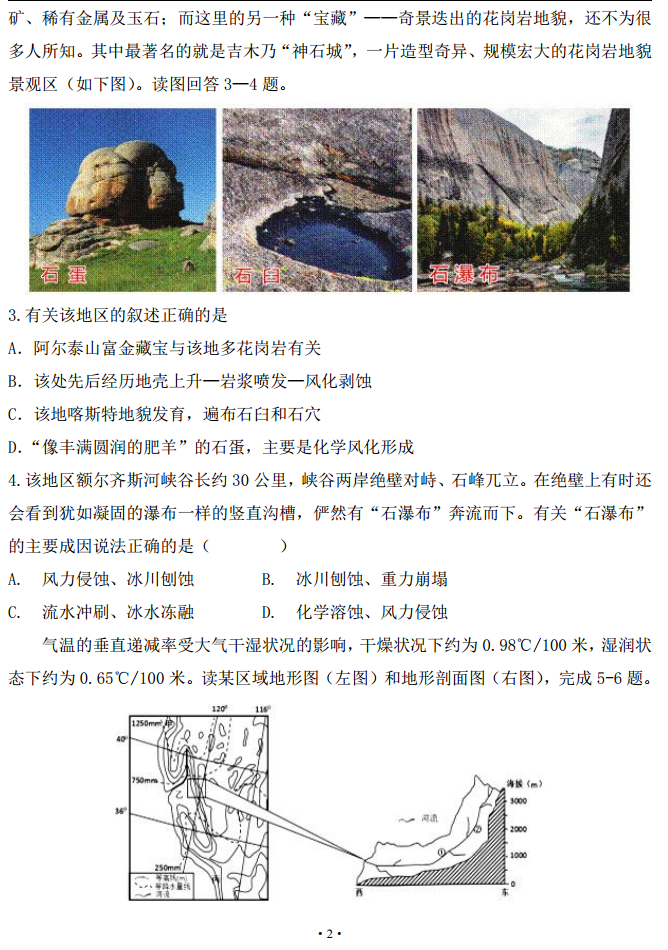 2016河北衡水市高三下学期一模文综地理试卷及答案(2)