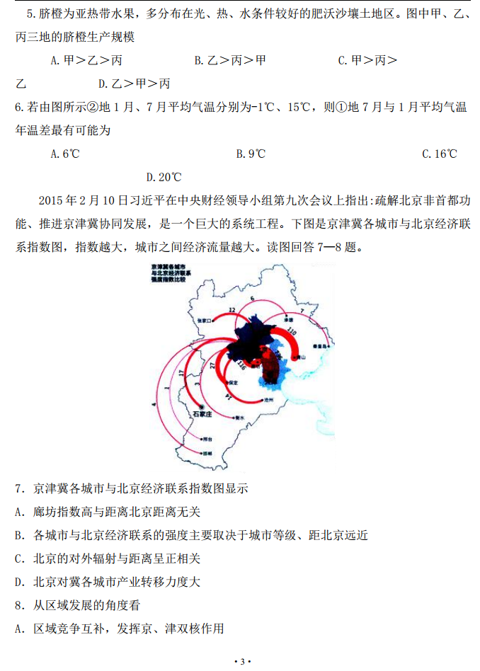 2016河北衡水市高三下学期一模文综地理试卷及答案(3)