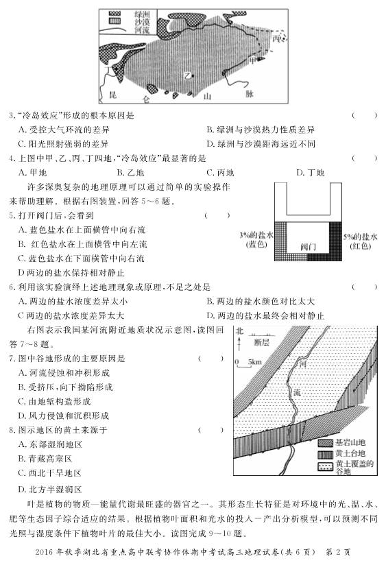 湖北2017届高三重点中学联考协作体期中考地理试题及答案(2)