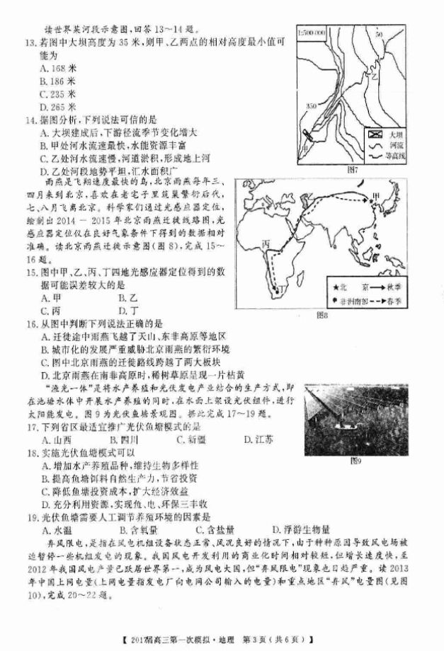 湖南湘潭市2017届高三第一次模拟考地理试题及答案(3)