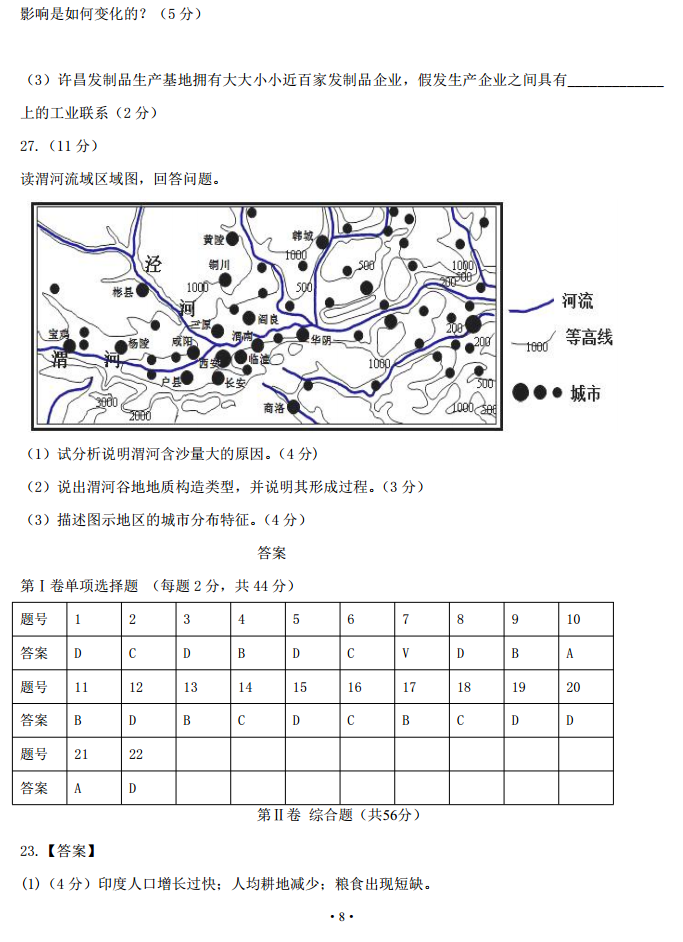 河北承德市2017届高三上学期期中考试地理试题及答案(8)