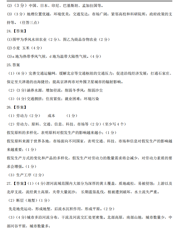 河北承德市2017届高三上学期期中考试地理试题及答案(9)