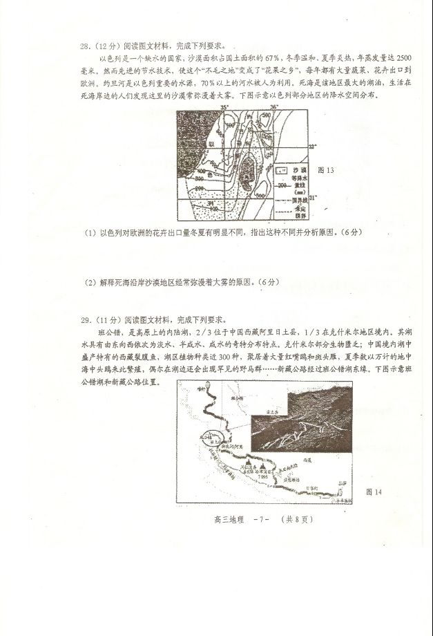 湖南怀化2017届高三期中博览联考地理试题及答案(7)