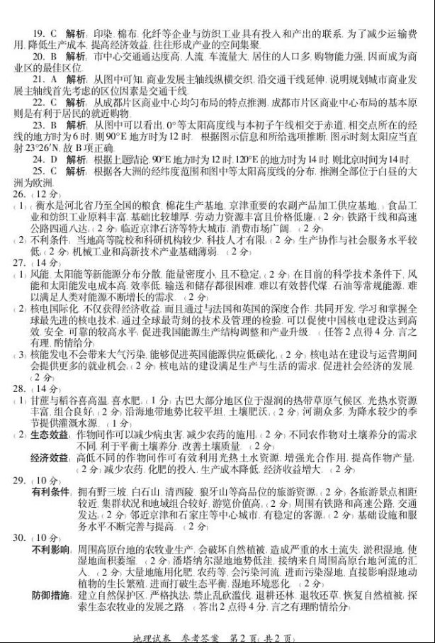 河北沧州2017届高三12月教学质量监测地理试题及答案(10)