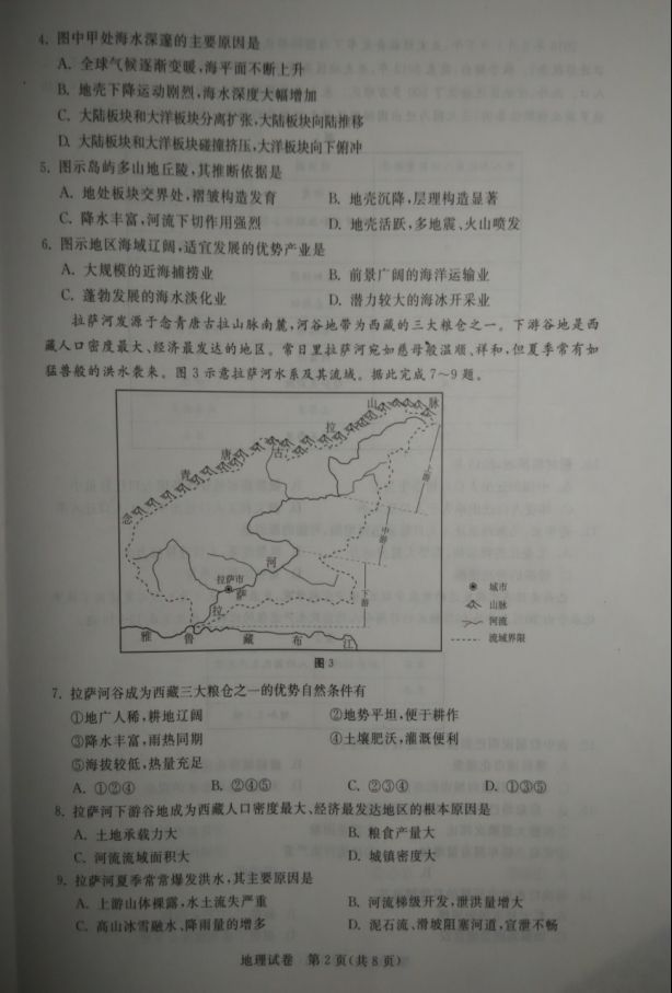 河北沧州2017届高三12月教学质量监测地理试题及答案(2)