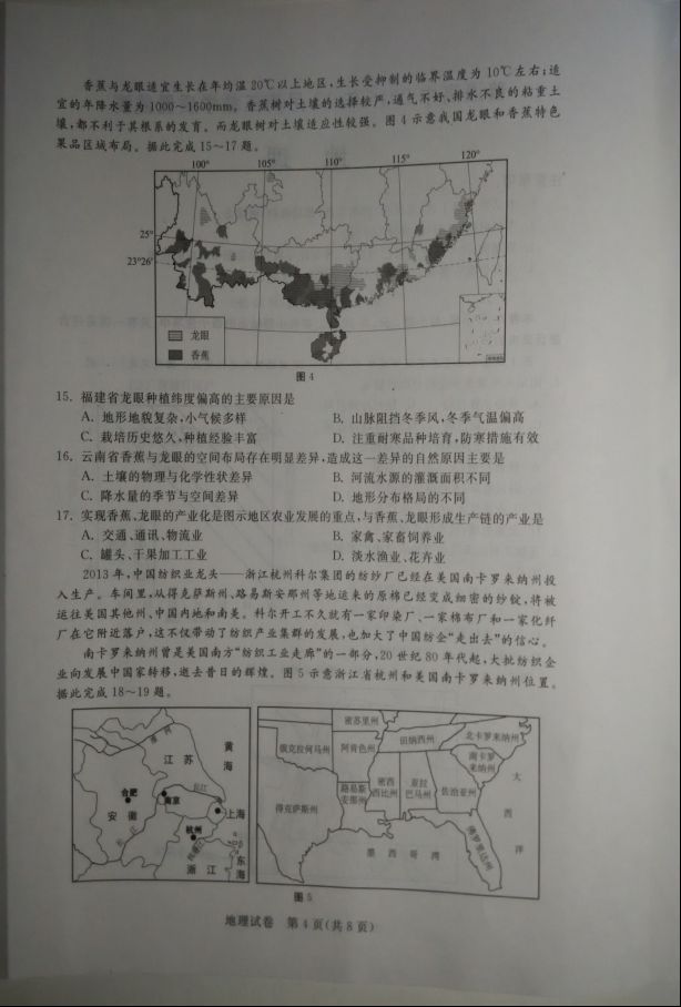 河北沧州2017届高三12月教学质量监测地理试题及答案(4)