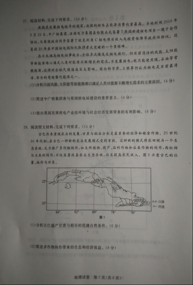 河北沧州2017届高三12月教学质量监测地理试题及答案(7)