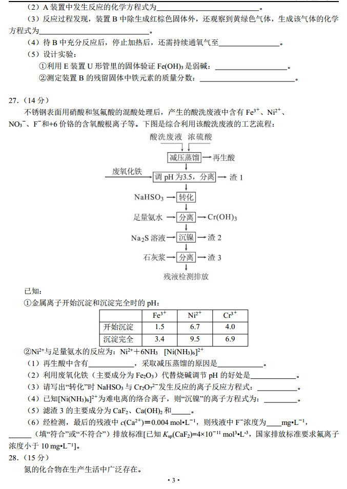 2016深圳高三第二次调研考试理综化学试题及答案(3)