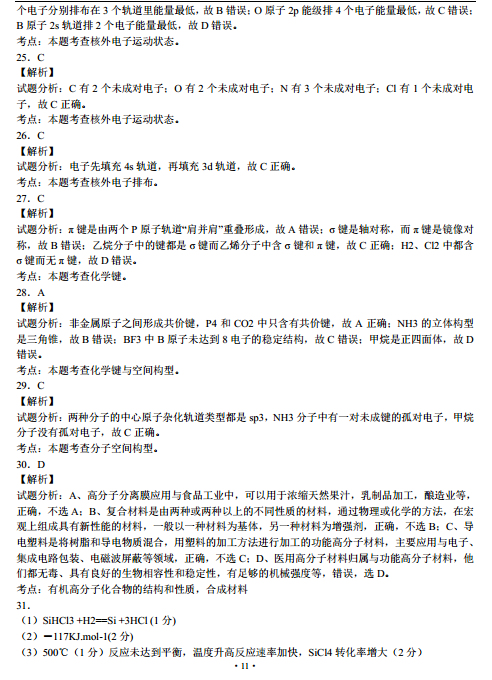 2016湖北枣庄第七中学高三下学期中考理综化学试题及答案(11)