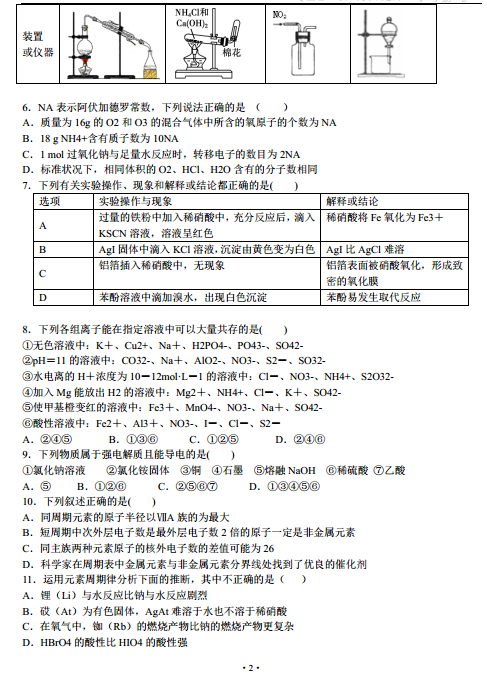 2016湖北枣庄第七中学高三下学期中考理综化学试题及答案(2)