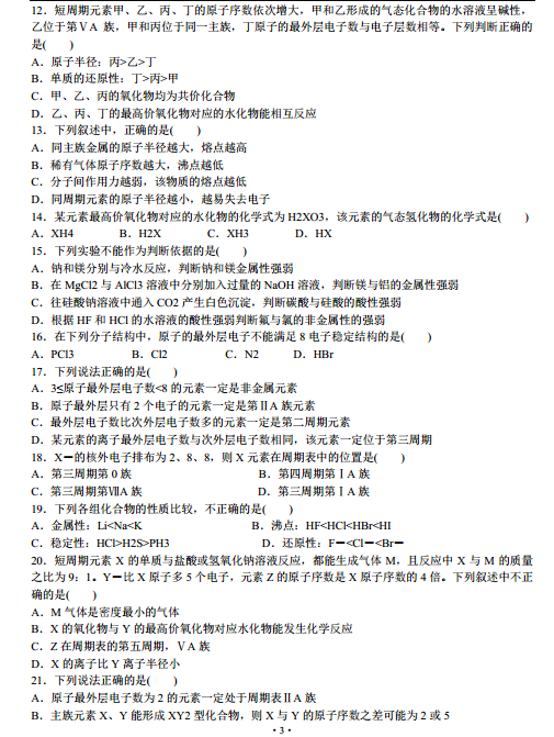 2016湖北枣庄第七中学高三下学期中考理综化学试题及答案(3)