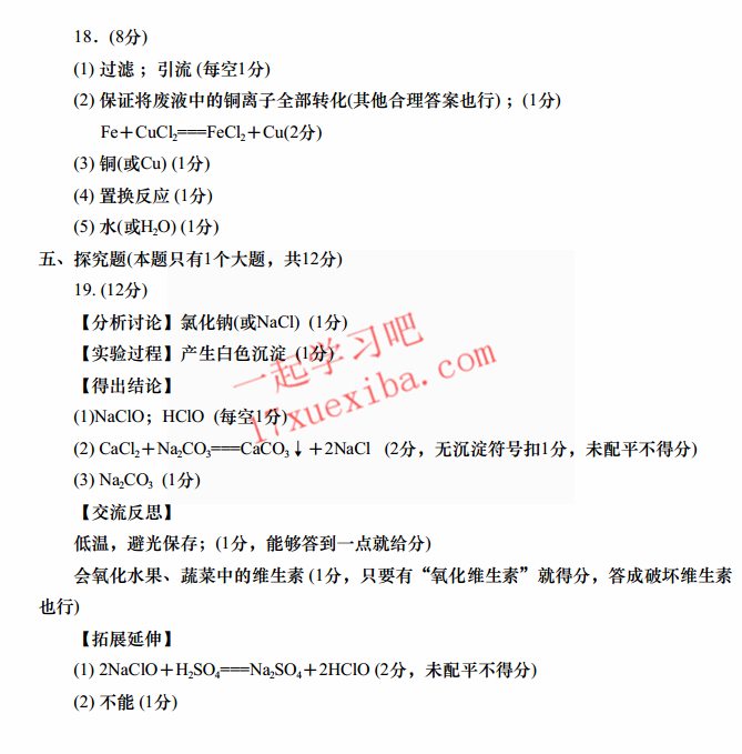 彭州市2017年初三诊断性考试化学试题答案(2)