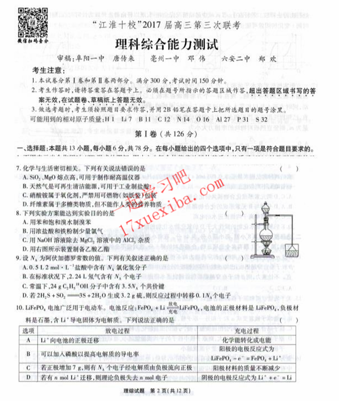 高中化学模拟题 http://www.ajrhws.com/hx/