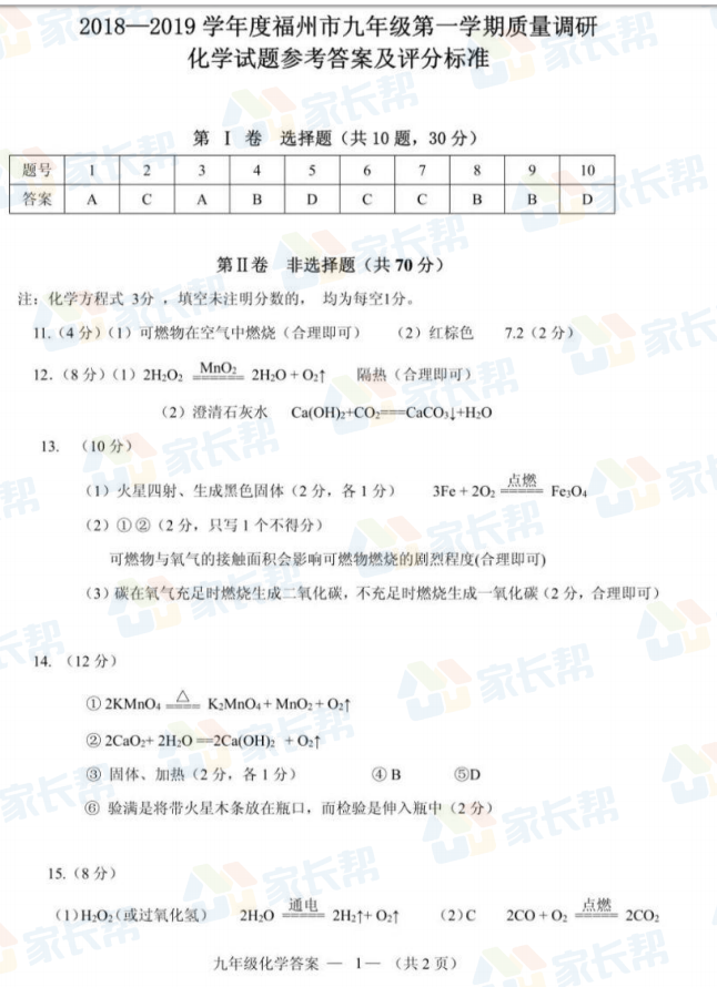 福州市2018-2019学年第一学期九年级期末质量检测化学试题答案(7)