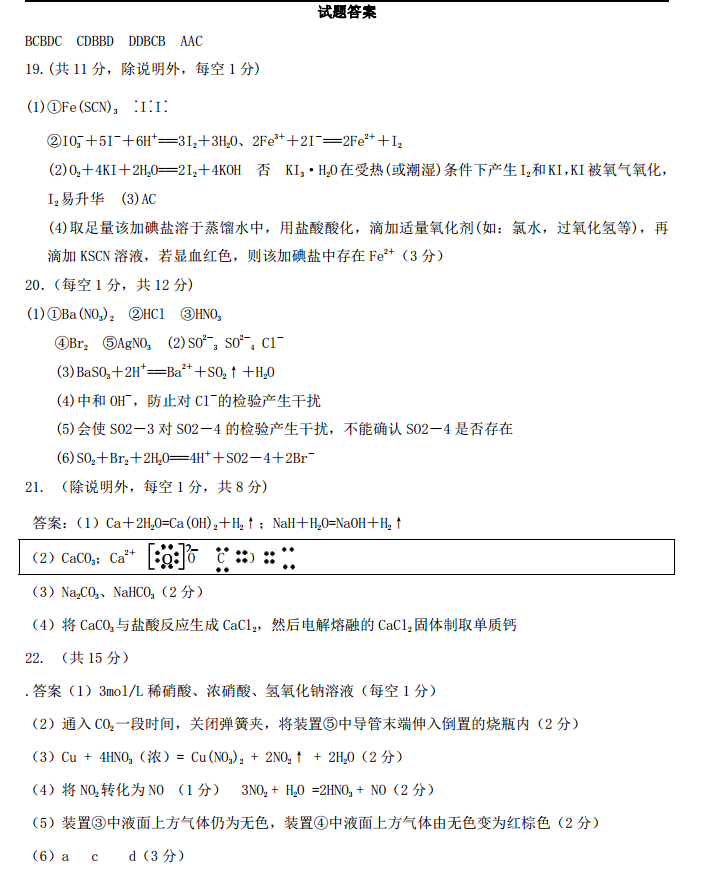 河北邯郸大名一中2017届高三上学期第一次月考化学试题及答案(10)