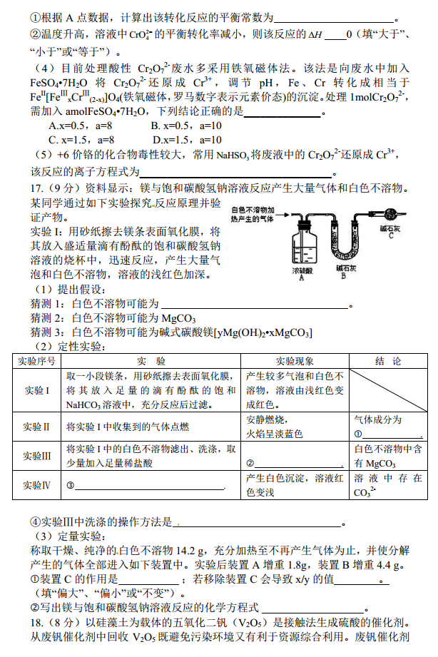 湖北部分重点中学2016-2017年度上学期高三起点考化学试题及答案(5)