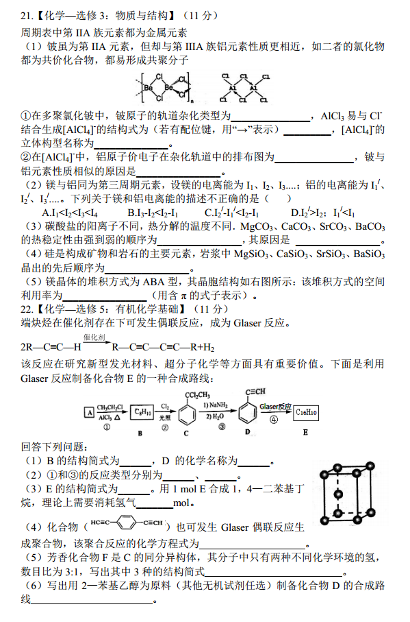 湖北部分重点中学2016-2017年度上学期高三起点考化学试题及答案(8)