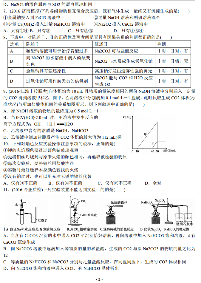 河北涞水波峰中学2017届高三8月月考调研考试化学试题及答案(2)