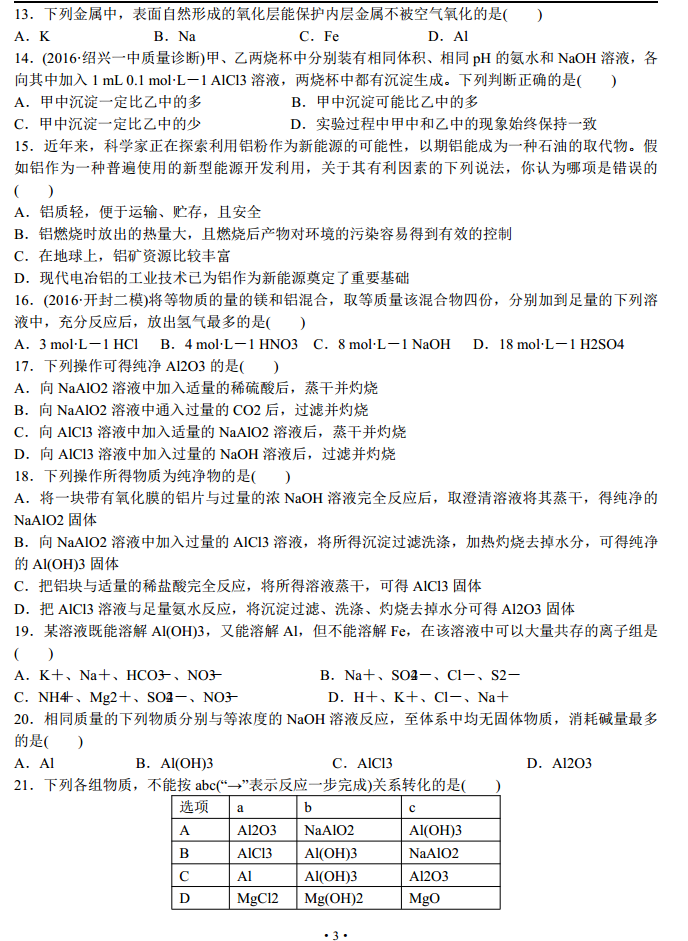 河北涞水波峰中学2017届高三8月月考调研考试化学试题及答案(3)