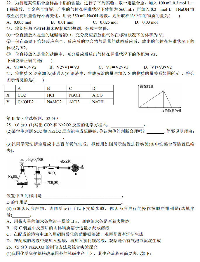 河北涞水波峰中学2017届高三8月月考调研考试化学试题及答案(4)