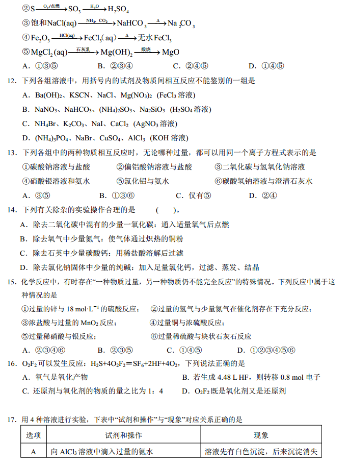 湖北沙市中学2017届高三上学期第二次考试理综化学试题及答案(3)