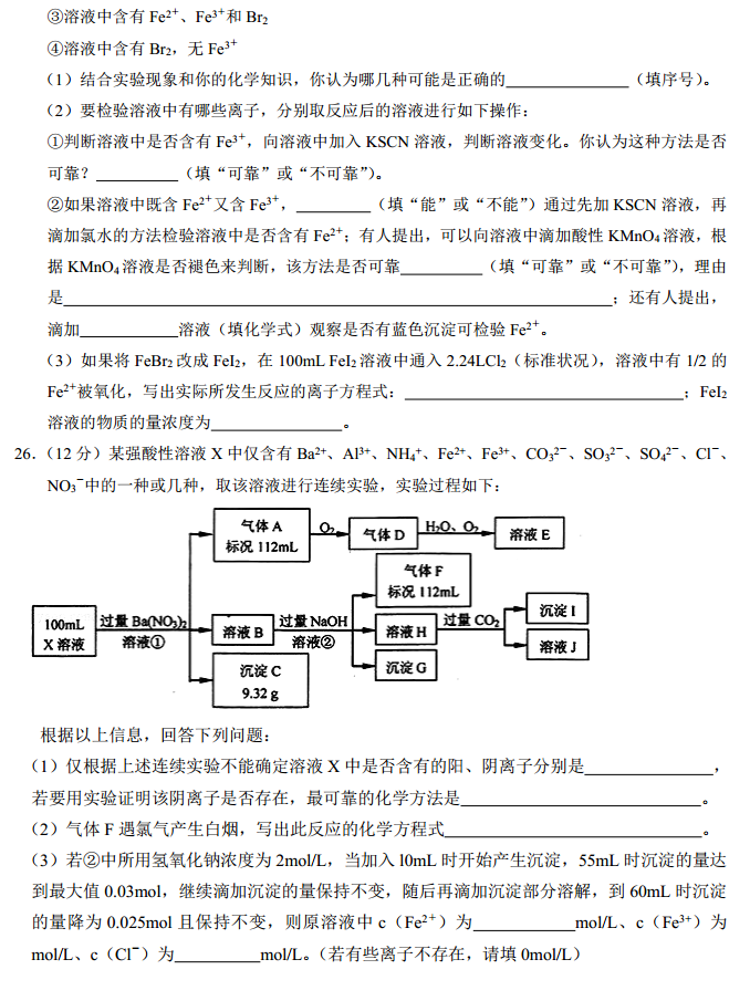 湖北沙市中学2017届高三上学期第二次考试理综化学试题及答案(7)